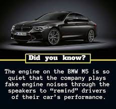 The engine on the BMW M5 is so quiet that the company plays fake engine noises through the speakers to remind drivers of their cars performance. BMW was originally founded in 1916 to meet the demand of World War one for airplane engines. It was founded in 1916 by Karl Rapp Gustav Otto Camillo Castiglioni and Franz Josef Popp.